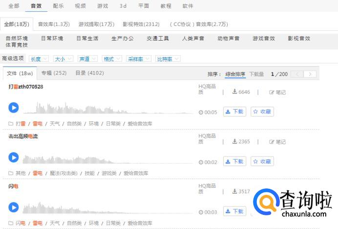 在搜索栏输入自己想要的音效,如:雷电