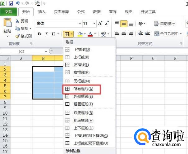 之后我们点击工具栏中的边框按钮,弹出的界面,我们点击所有边框;