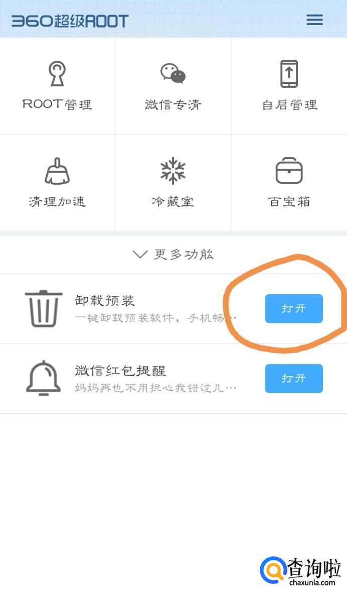 Root之后,可以看到360超级root有一个“卸载预装”的功能,点击打开