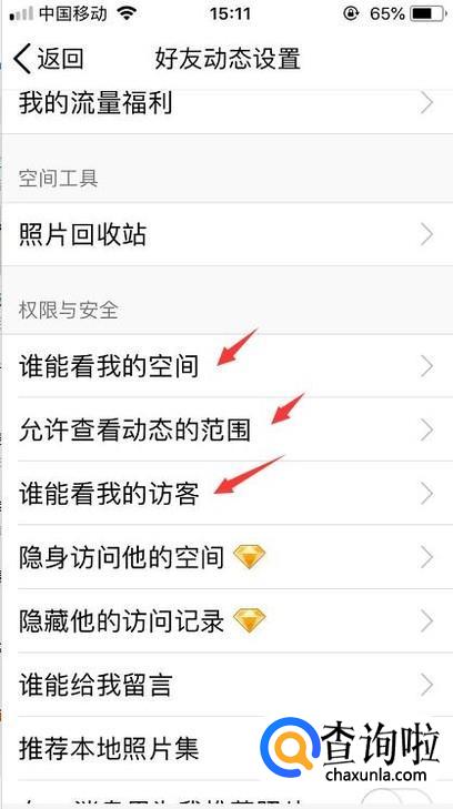 点击到权限设置里面我们可以设置谁能访问空间、访客等等。