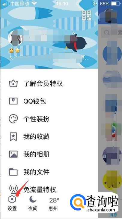 首先登录qq后点击左上角的头像进入到设置的功能。