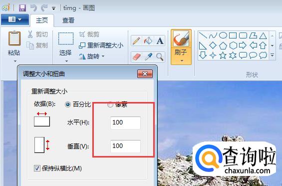 可以在新弹出的框里看见水平和垂直方向上的值都是100。