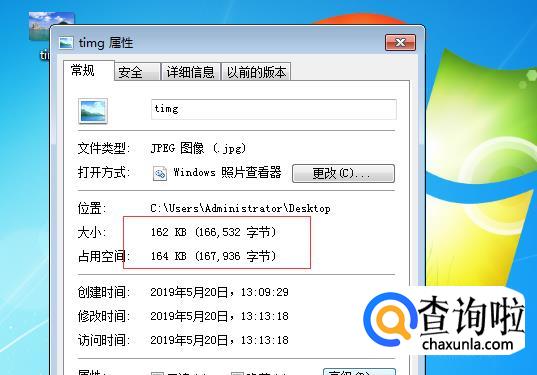 看,调整大小后,照片内存只有162KB了,比之前小了很多,如果还是大的话可以用上面的方法继续缩小哦!