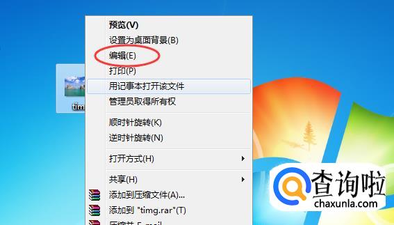 鼠标右键点击照片,选择“编辑”,如下图所示。