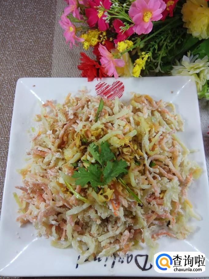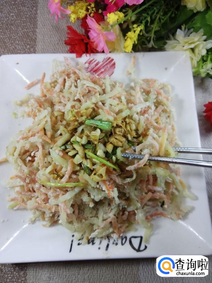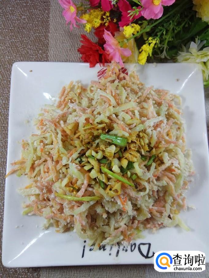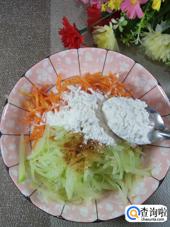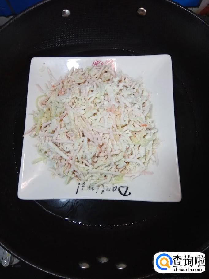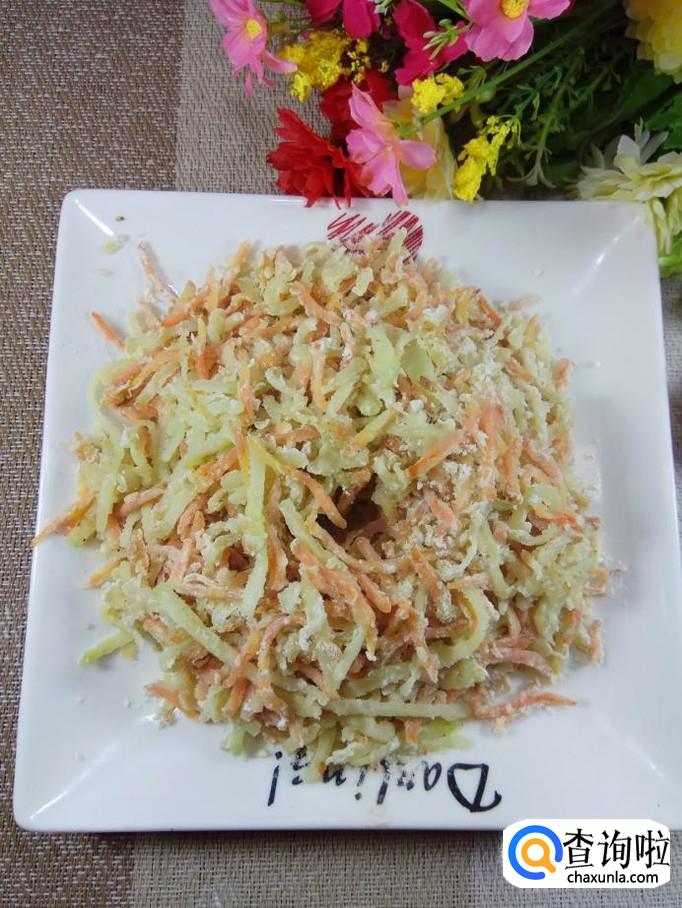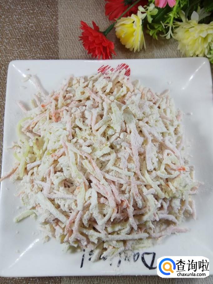 再加入适量面粉,搅拌一下,让萝卜丝都沾上一层面粉,最好彼此都不粘连。