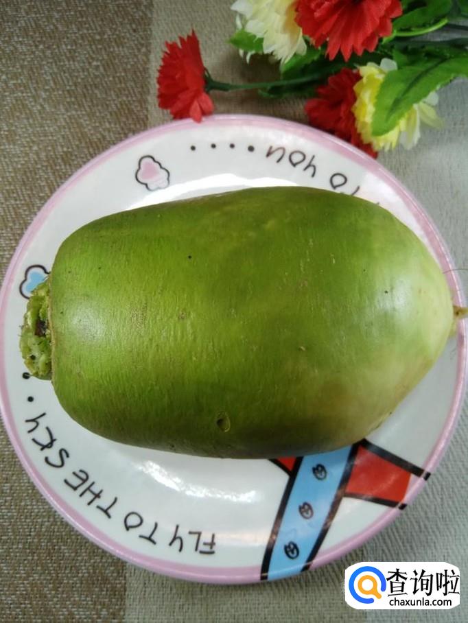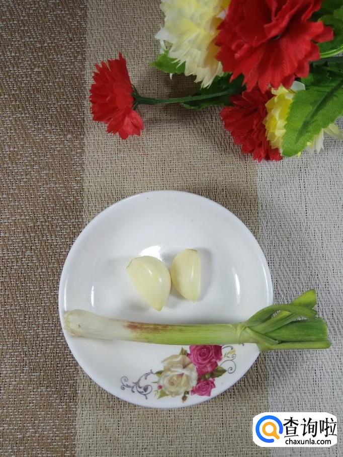 准备一个绿皮萝卜,一根胡萝卜,适量蒜和葱,将它们洗净后放入盘中备用。