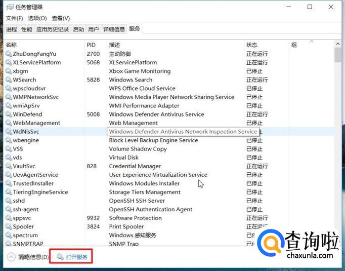 进入系统服务页面之后,点击页面底部“打开服务”按钮,进入系统服务设置页面。