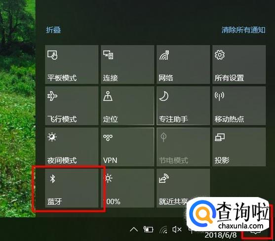 Bluetooth相关服务全部启动之后,点击系统托盘中的展开图标,在托盘图标开关页面中,点击蓝牙设备开关,使其处于开启状态。