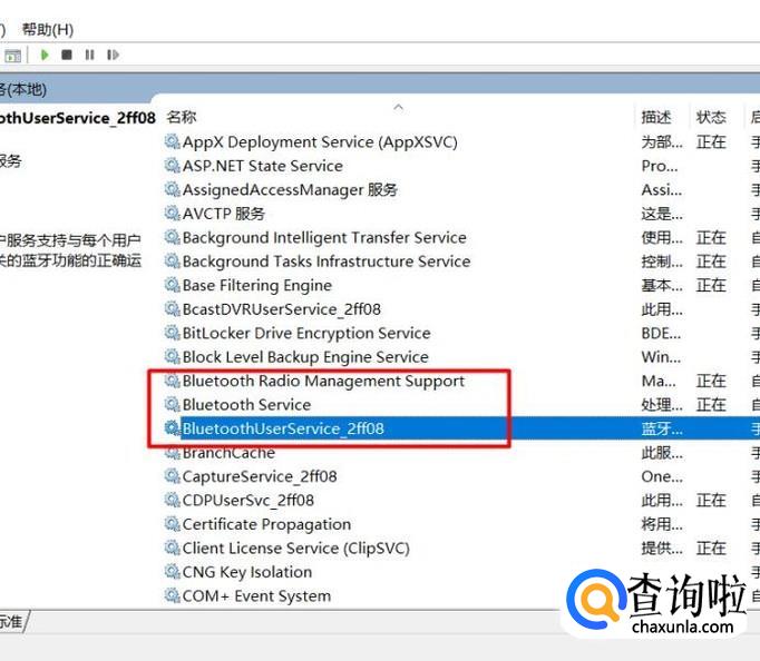 在系统服务设置页面中,找到有关Bluetooth的相关服务,查看这些服务是否都处于运行状态。