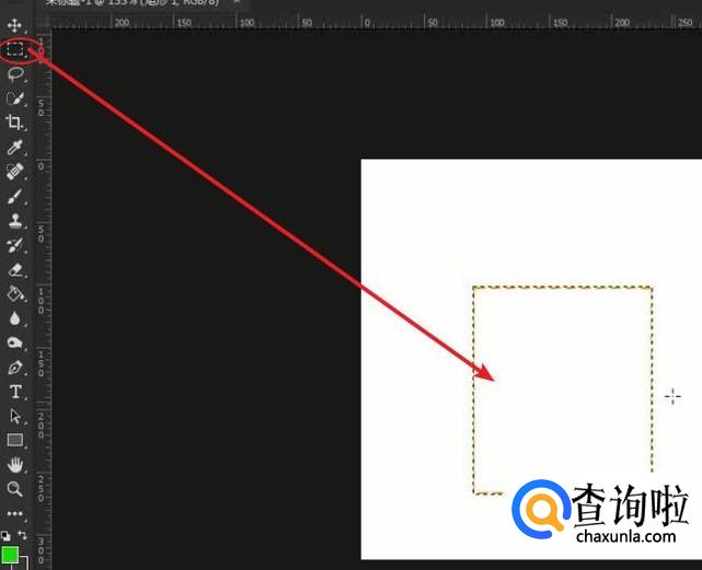 使用矩形选框工具,在画布上虚线边框内部绘制选区。