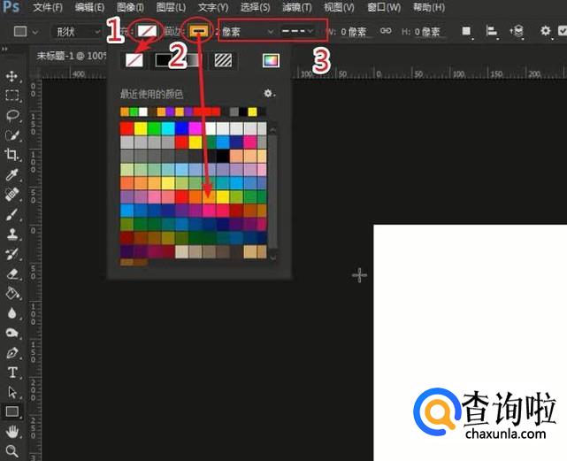 通过矩形形状工具,在画布的空白区域绘制邮票边界的虚线形状。