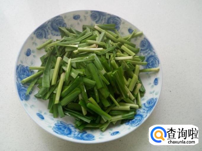 韭菜收拾清洗干净,控干水分,切成寸段。