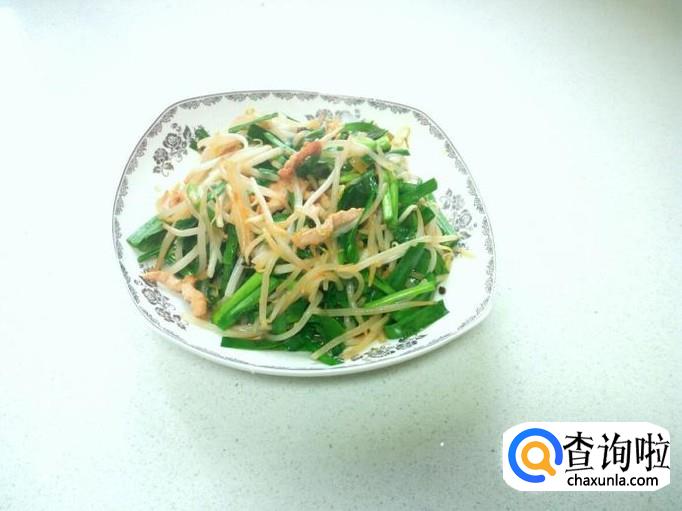 绿豆芽 250克 ,韭菜 150克 ,猪瘦肉 100克。