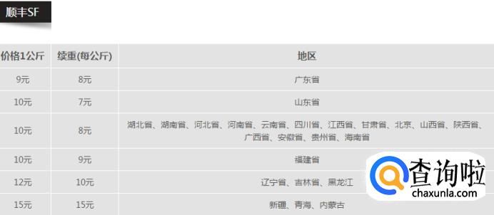 顺丰收费最高,速度最快,收费按地区划分六种价格标准