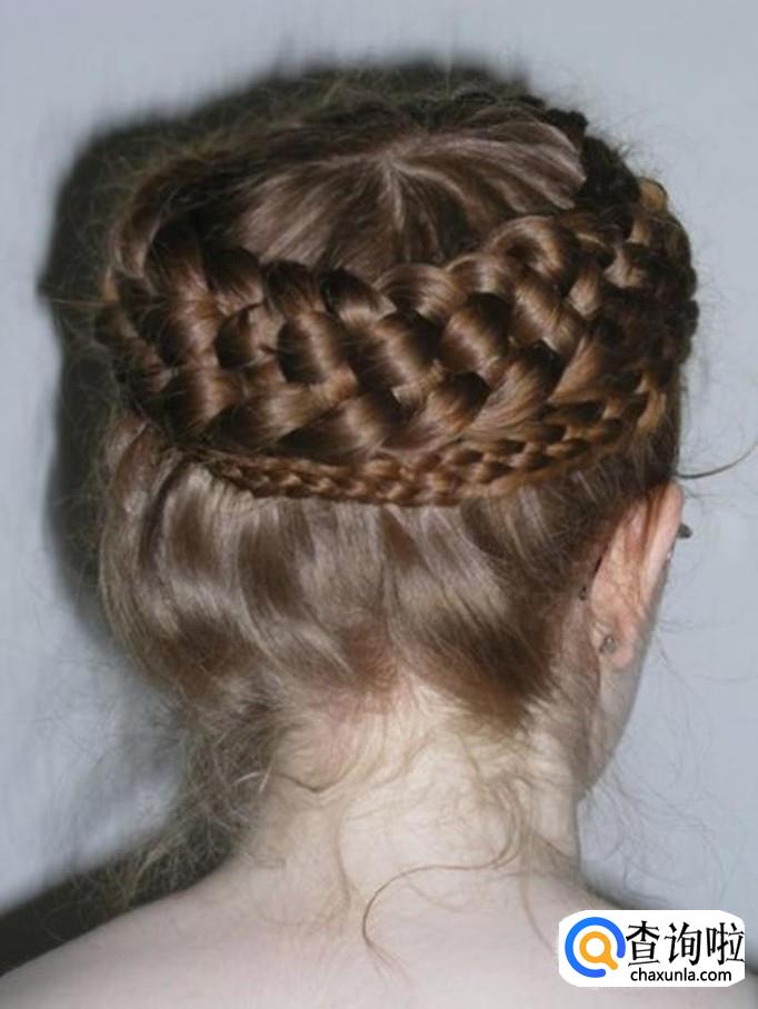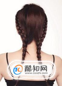 先把头发耳朵为分界线分开,后面的头发再竖直均分成两部分,每一部分都按照三股辫的方法编好。