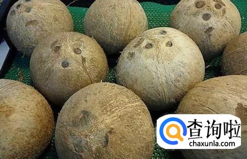我们拿到椰子,首先看到在椰子的顶部有三个小眼,这三个眼就是用来喝椰汁的。