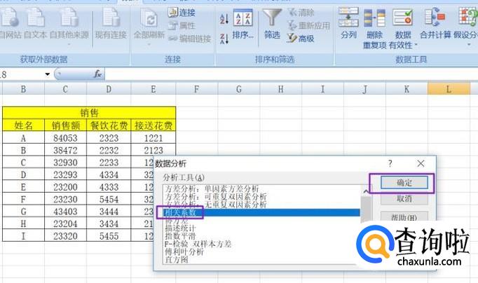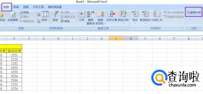 然后我们点击工具栏数据里面的数据分析;