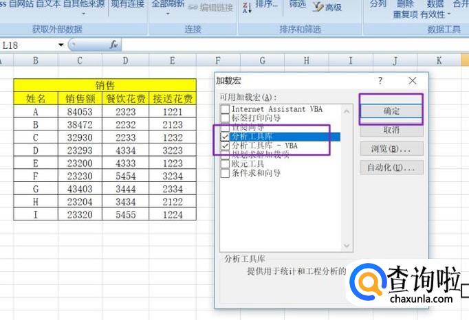 弹出的界面,我们将分析工具库和分析工具库-VBA都勾选上,然后点击确定;