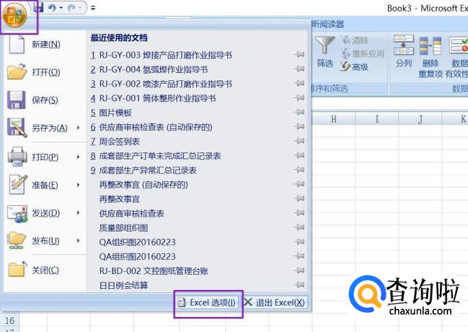 点击左上角的office按钮,弹出的界面,我们点击Excel选项;