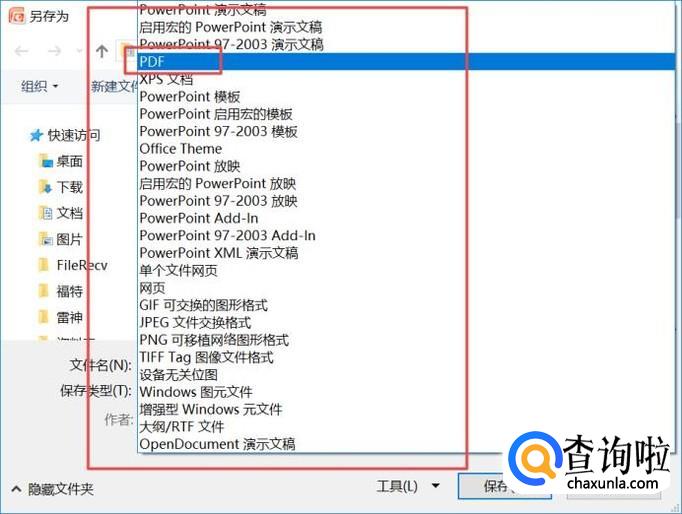 然后我们就可以看到很多不同格式的保存类型了,此处我们选择PDF格式;