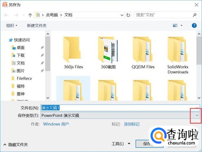 弹出的界面,我们点击保存类型边上的下拉箭头;