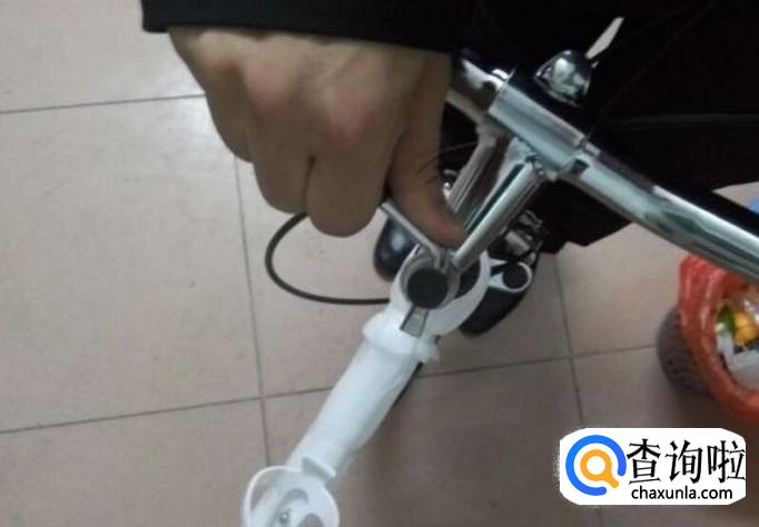 抓起车头,插入车头管,双腿夹住前车轮,将车头对正,旋转拧动车头顶部固定杆上得小柄,锁死车头,将小柄压下;车头与车头管连接处有一个特大号螺丝帽,拧动锁死。