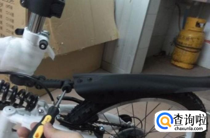 后挡泥板安装在车座下方,加上垫圈,用螺丝刀固定。