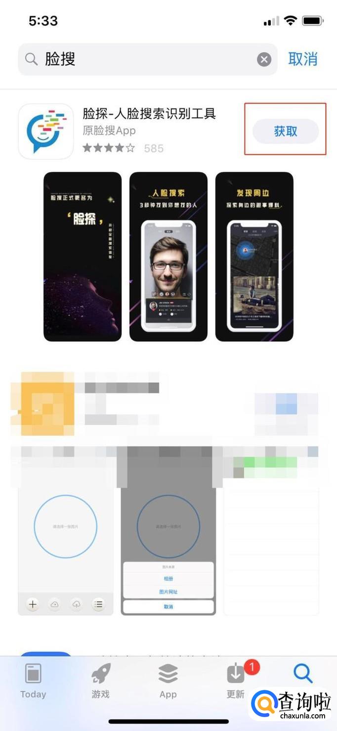 点击“获取”,将脸搜软件下载下来。