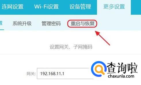 当然通过路由器网站也可以可以重启的,比如小编以自己目前在用的路由器为例,我们点击网站中“重启与恢复”或者相关字眼,然后重新启动路由器试试如图,一般来说路由器时间用久了都需要重启的;