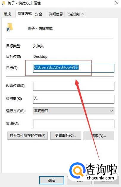 在属性页面,我们可以看到目标的位置。我们可以把这个位置复制下来。