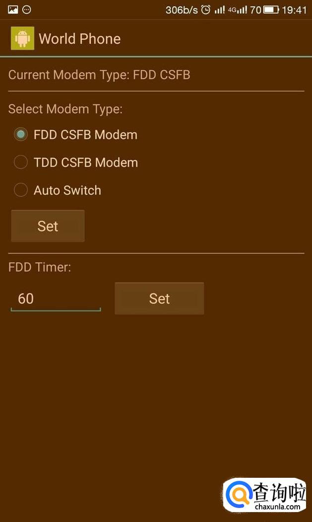 点击过后会进入图中界面,然后选择Select Modem Type ,再点击FDD CSFB Modem,最后点 SET确定后返回。