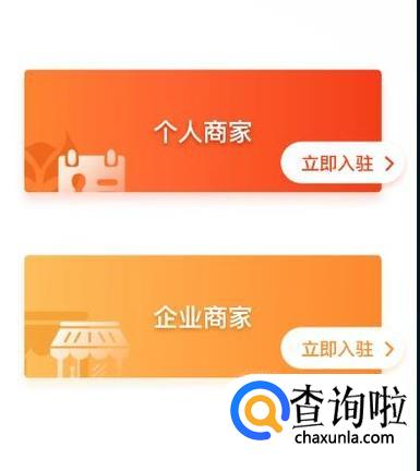 点击商家入驻功能就会来到个人商家和企业商家的界面,如图
