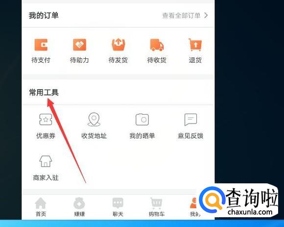 在账号界面中会看到常用工具的字样,如图