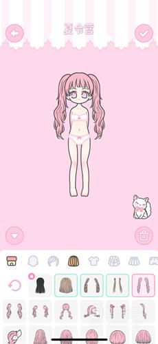 开始搭配的时候我们先来选择头发的类型,首先选择粉色双马尾发型,青春洋溢。