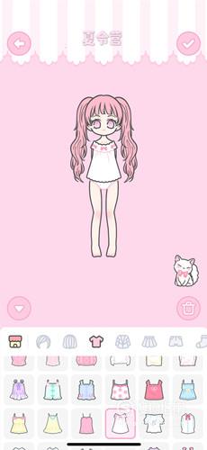 接着我们在衣服的选项中进行选择,选择一件粉白色的蝴蝶结领口短袖,如下图所示。
