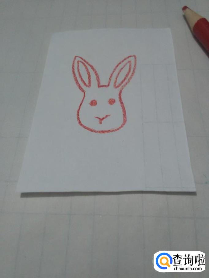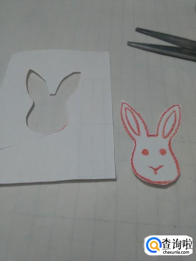 用彩笔在白纸上画一只可爱的小兔子头,然后用剪刀将小兔子头剪下来。