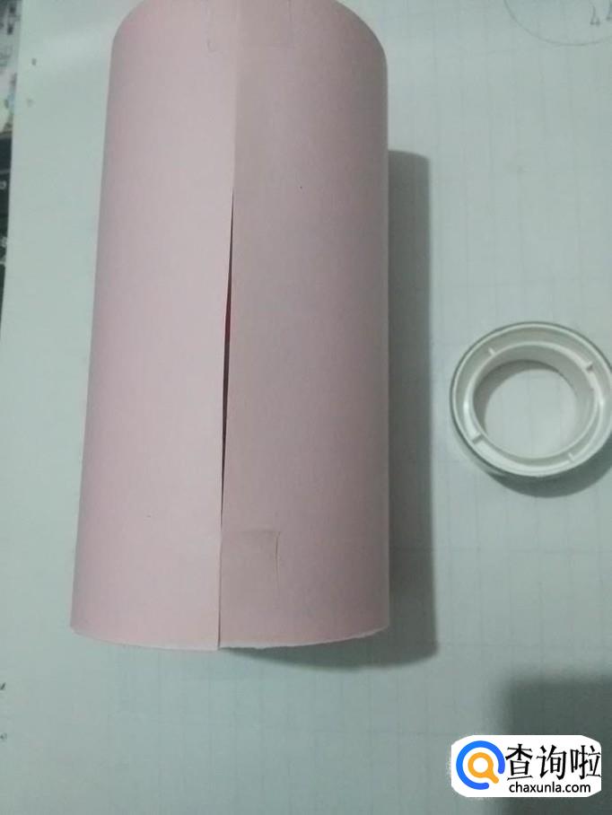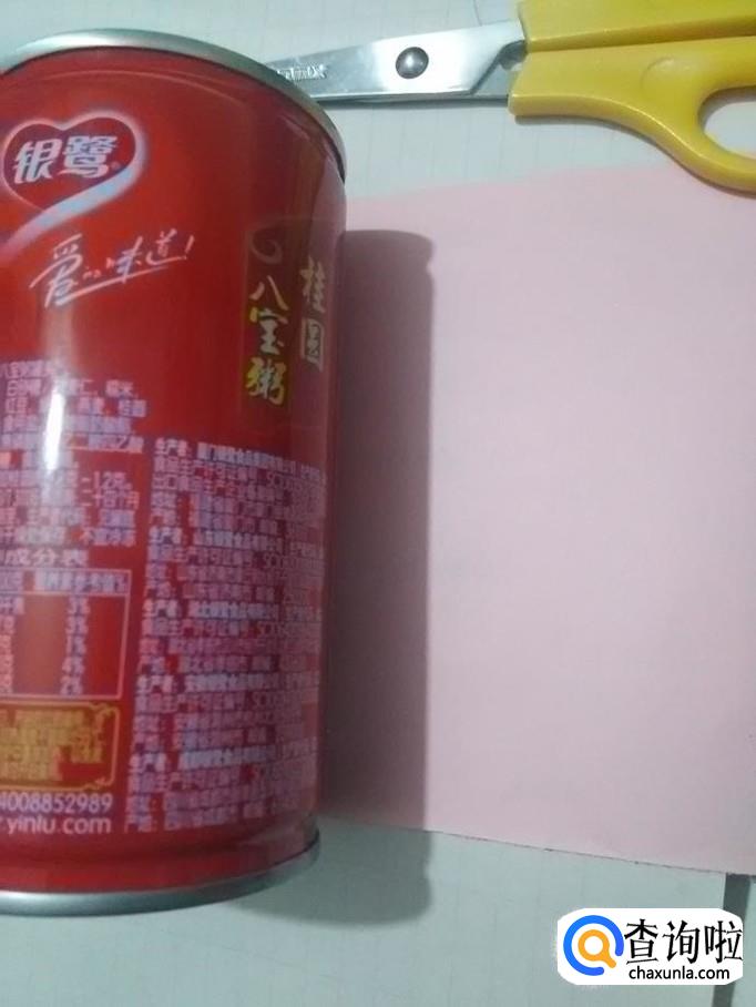 将食品罐的底边和纸的底边对齐,然后按照食品罐的高度,在纸上剪下一条和食品罐一样高的纸。