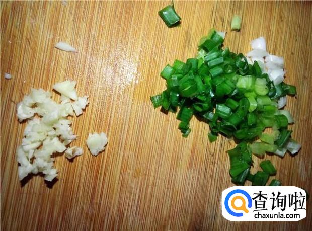 准备好所有材料:生蚝、香葱一根、蒜头适量。