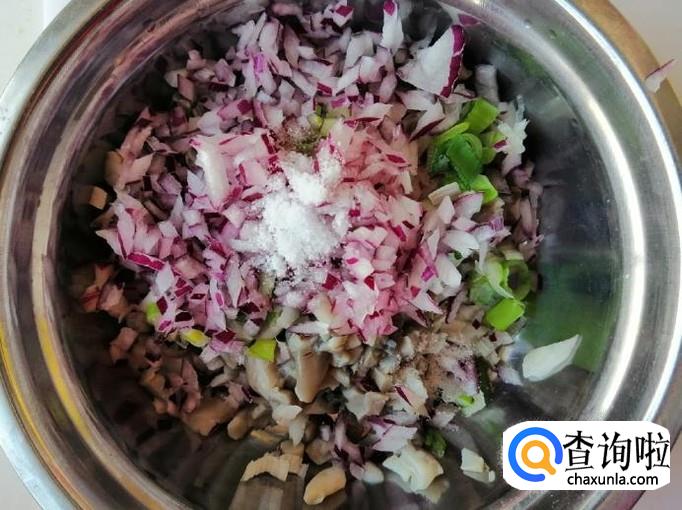 取适量新鲜的大葱,用清水把葱洗净,然后把从切末,最好是青葱,炒出来颜色比较好看,把切好的葱末放入蘑菇中,加入切好的圆葱末。