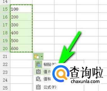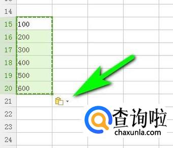 复制后,直接按下CTRL+V,执行在原位粘贴,此时,在数据的右下角有一个图标