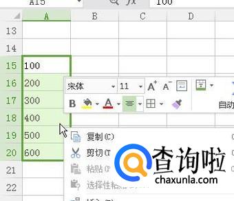 保持数据在选中的状态下,右击鼠标,弹出右键菜单,再点击:复制