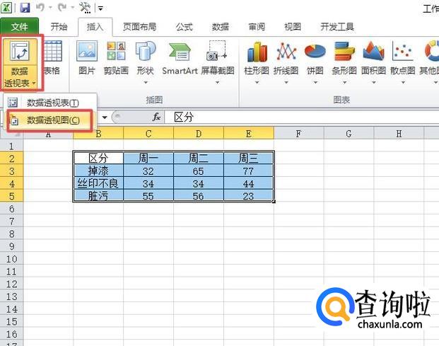 然后我们点击工具栏中的数据透视表,弹出的界面,我们点击数据透视图;