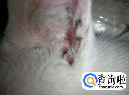 过一会,猫咪甩动头,将耳朵肿的耳螨甩出来。然后,在用棉签给它清理一下耳朵周围耳螨即可。