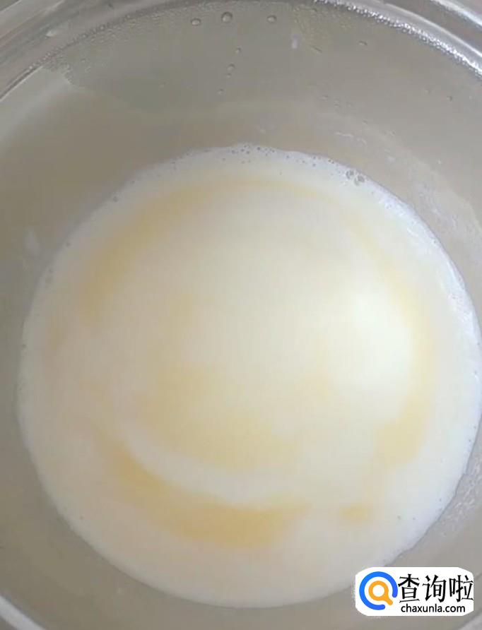 首先,准备一个干净的锅,锅中加入110g纯牛奶,开小火慢熬