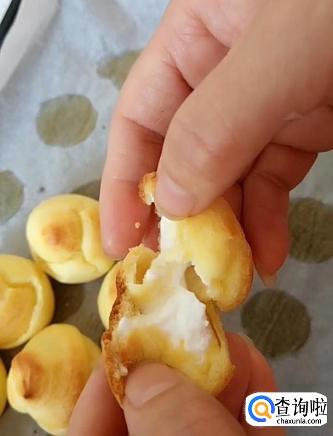 最后取出从底部挤入打发好的淡奶油即可!美味的泡芙就制作完成啦!