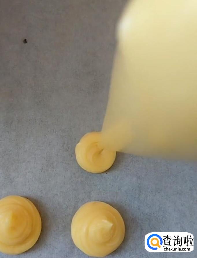 然后装入裱花袋中,挤在烤盘上面
