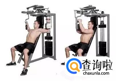 夹胸器夹胸夹胸器夹胸能够锻炼到胸肌内缘。做法:锻炼时人站在夹胸器中央,调整好拉索的长度,手执马蹄凳做夹胸动作。身体略微向前倾,打开时要注意控制动作,合拢时尽力的挤压胸肌,略微停顿后进行顶峰收缩。