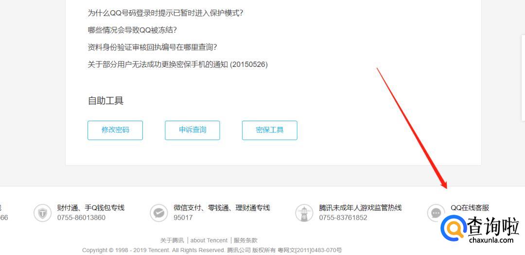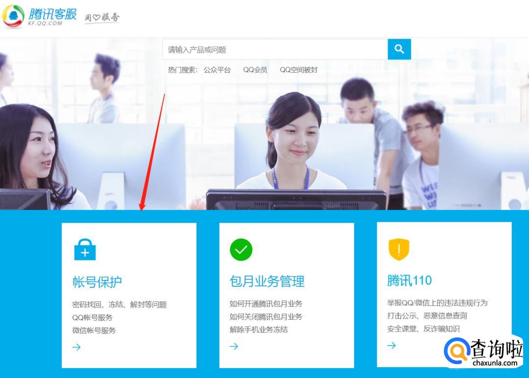 搜索打开腾讯客服官方,点击账号保护。