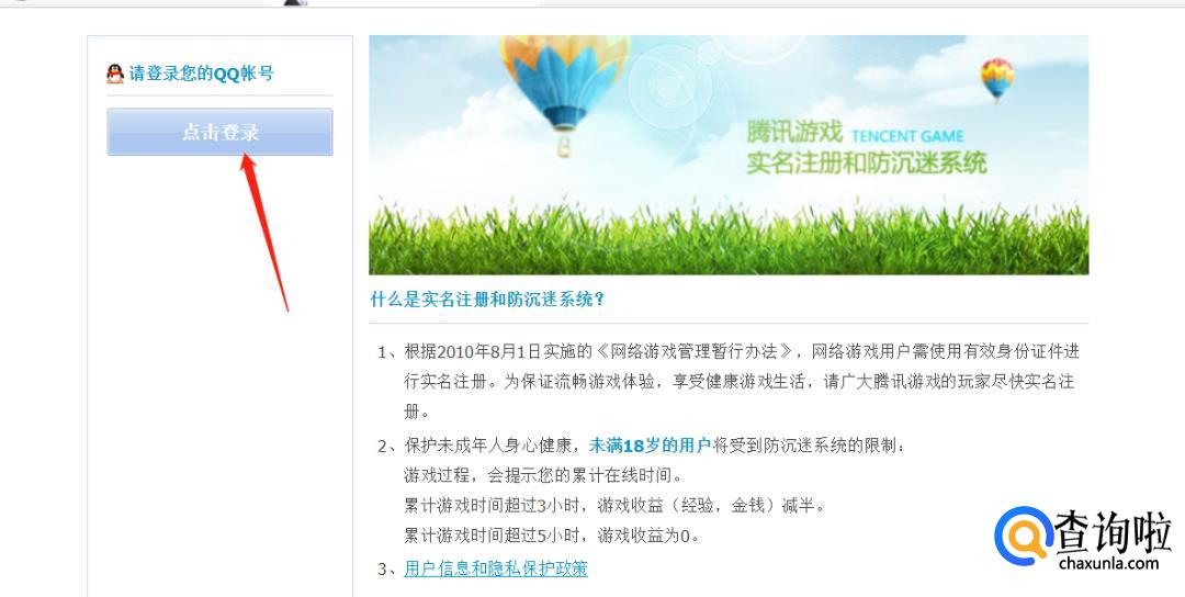 在主界面会看到“点击登录”,点击后输入自己账号和密码,登录腾讯防沉迷官网。