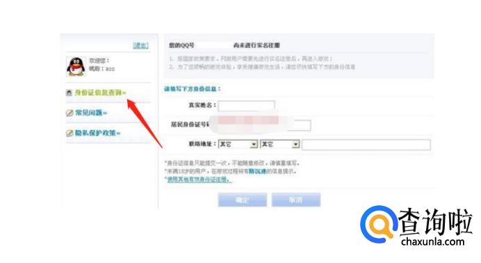 弹出的界面中,会看到“身份证信息查询”,如果没有绑定身份证,输入身份信息绑定就可以了。